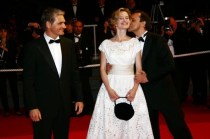 Konstantin Lavronenko, Maria Bonnevie and Andrey Zvyagintsev at the red carpet premiere of “The Banishment.” Courtesy of Cannes Film Festival.