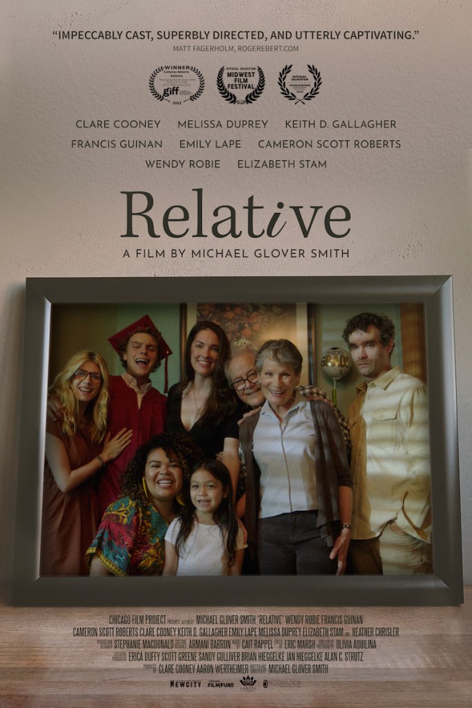 “Relative” screens at 7pm on Wednesday, June 8th, at the Music Box Theatre, with Heather Chrisler, Clare Cooney, Melissa DuPrey, Francis Guinan, Emily Lape, Cameron Scott Roberts, Wendy Robie, Michael Glover Smith, Gabriel Solis and Elizabeth Stam in attendance for a post-screening Q&A moderated by yours truly.